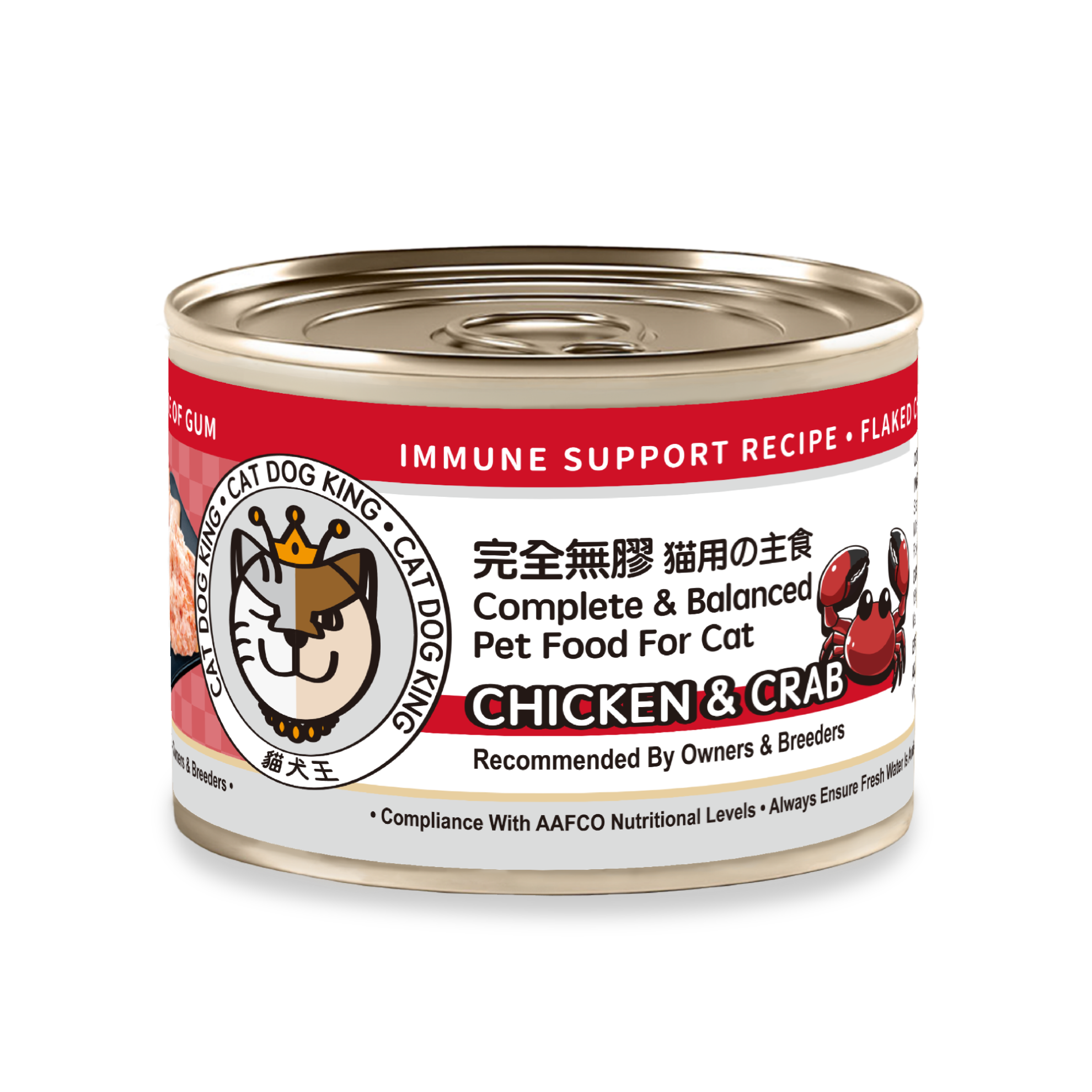 Ingredients: Chicken, crab meat, tapioca starch, fish extract, flavor enhancer, vitamins, minerals, taurine, zinc amino acid complex, FOS, vitamin E