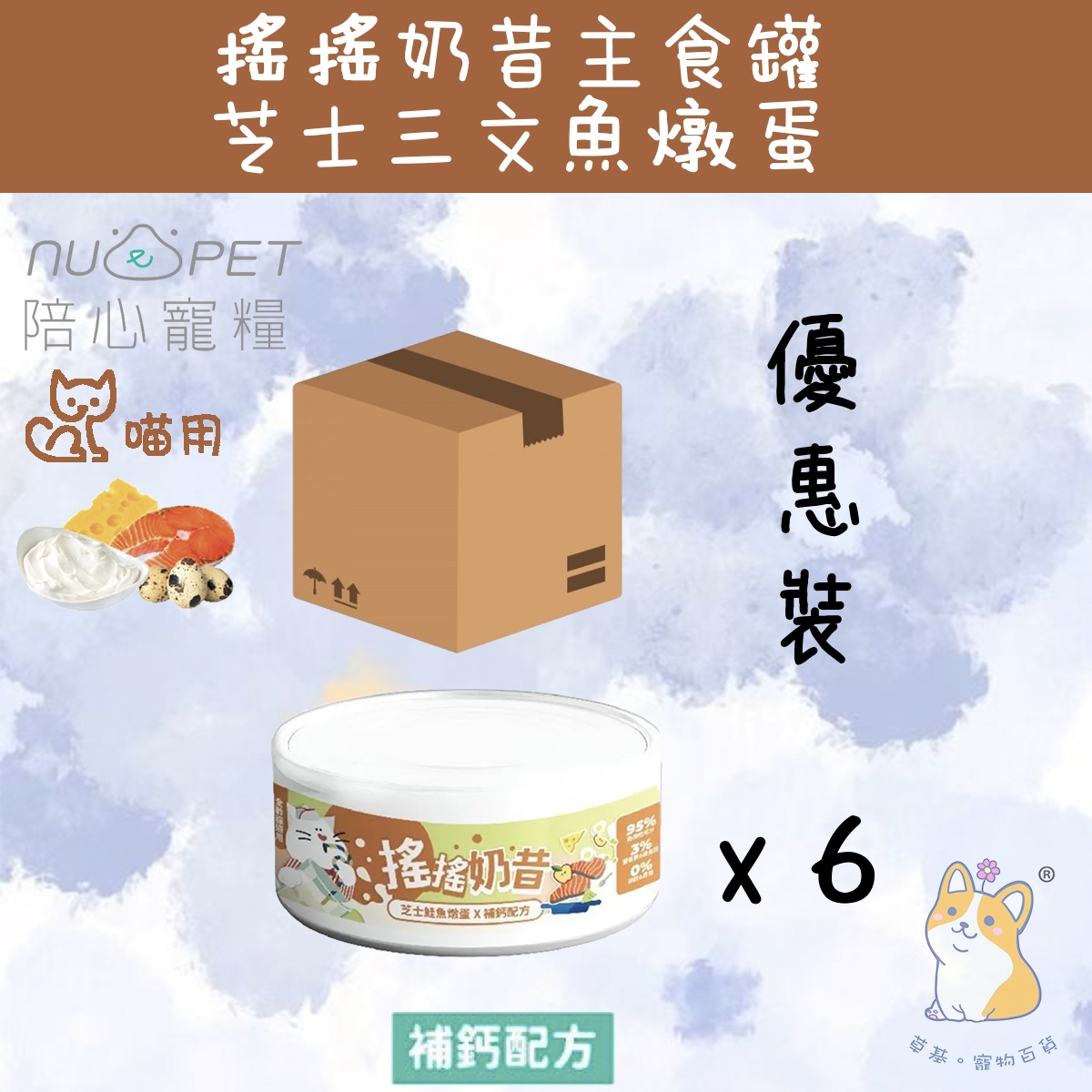 搖搖奶昔罐 - 芝士鮭魚燉蛋80g - 幫助毛孩補鈣每罐都添加超級食物【優格】,餐餐營養、餐餐美味!✨ 開罐前搖 7 下,美味口感乘 7 倍!✨✔ Q彈棉密質地,添加『超級食物』的機能罐✔ 通過適口性測試,92%貓貓都愛的『奶昔質地』✔ 加入100%法國天然海藻鈣,補充鈣、鎂微量元素✔ 機能鮮高湯,80%超高含水量,為貓貓補水聖品✔ 零澱粉、零穀物、無爭議性膠類,毛孩安心食用✔ 符合AAFCO&NRC建議之營養標準,適合全齡貓食用