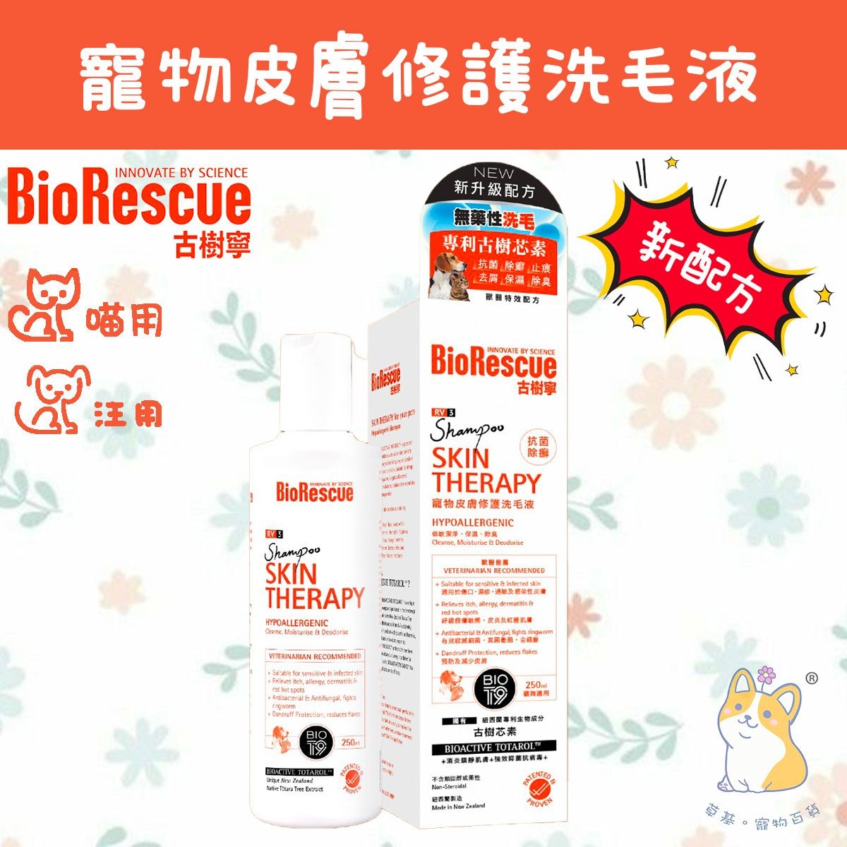 古樹寧 新升級配方 寵物低敏皮膚修護保濕洗毛液 | 抗菌除廯除臭潔淨| 貓犬適用 (250ml)