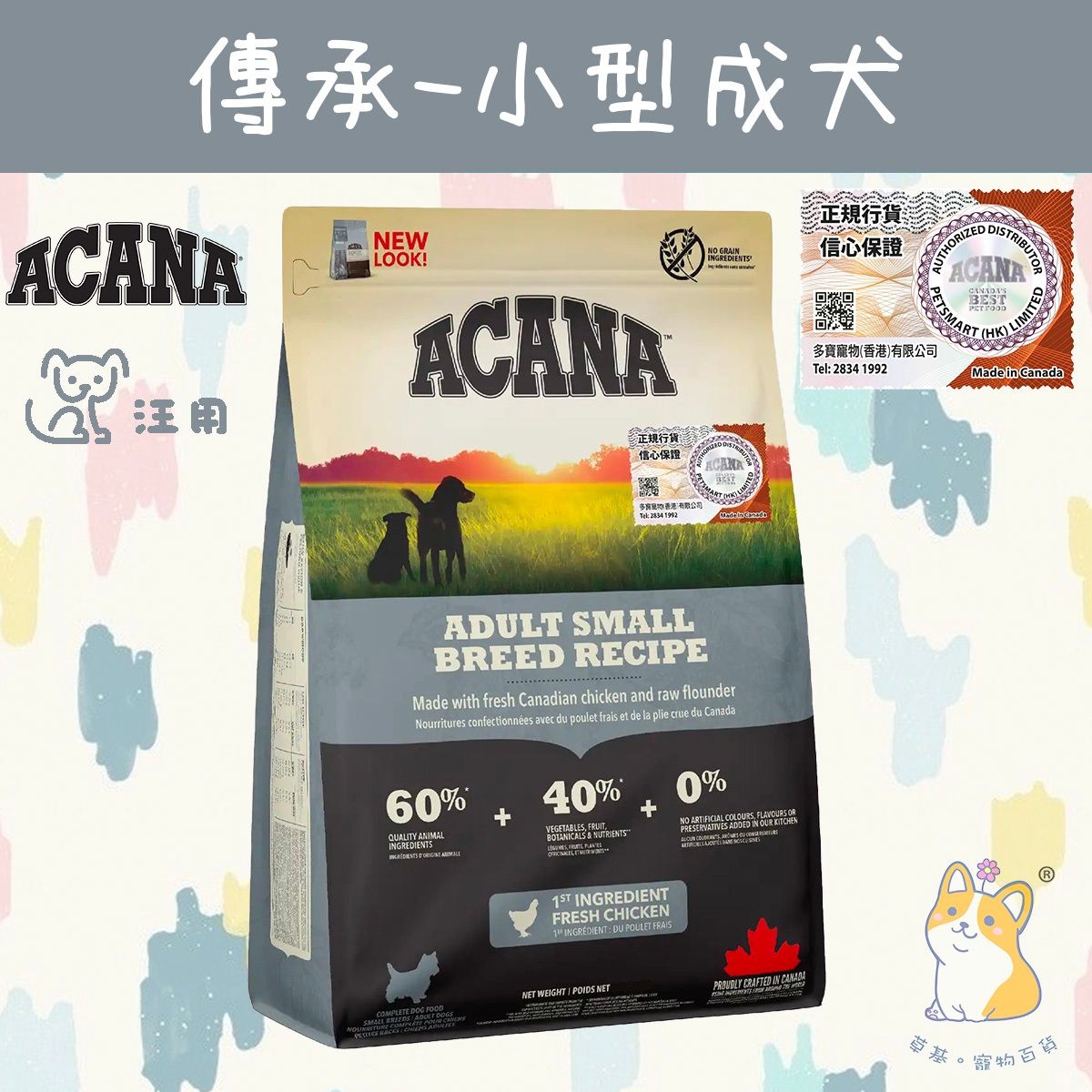-ACANA Heritage 小型犬成犬 狗糧 -小顆粒設計-維持活躍能量需求
