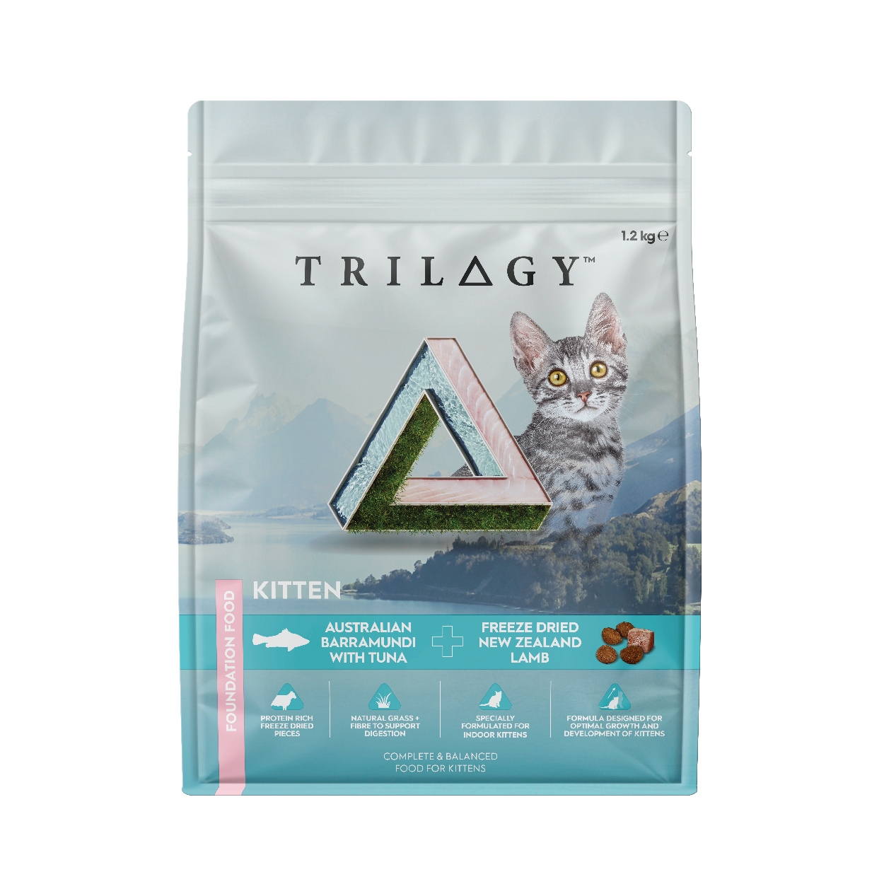 TRILOGY™ 幼貓 澳洲尖吻鱸魚及吞拿魚+紐西蘭凍乾羊塊的配方符合AAFCO