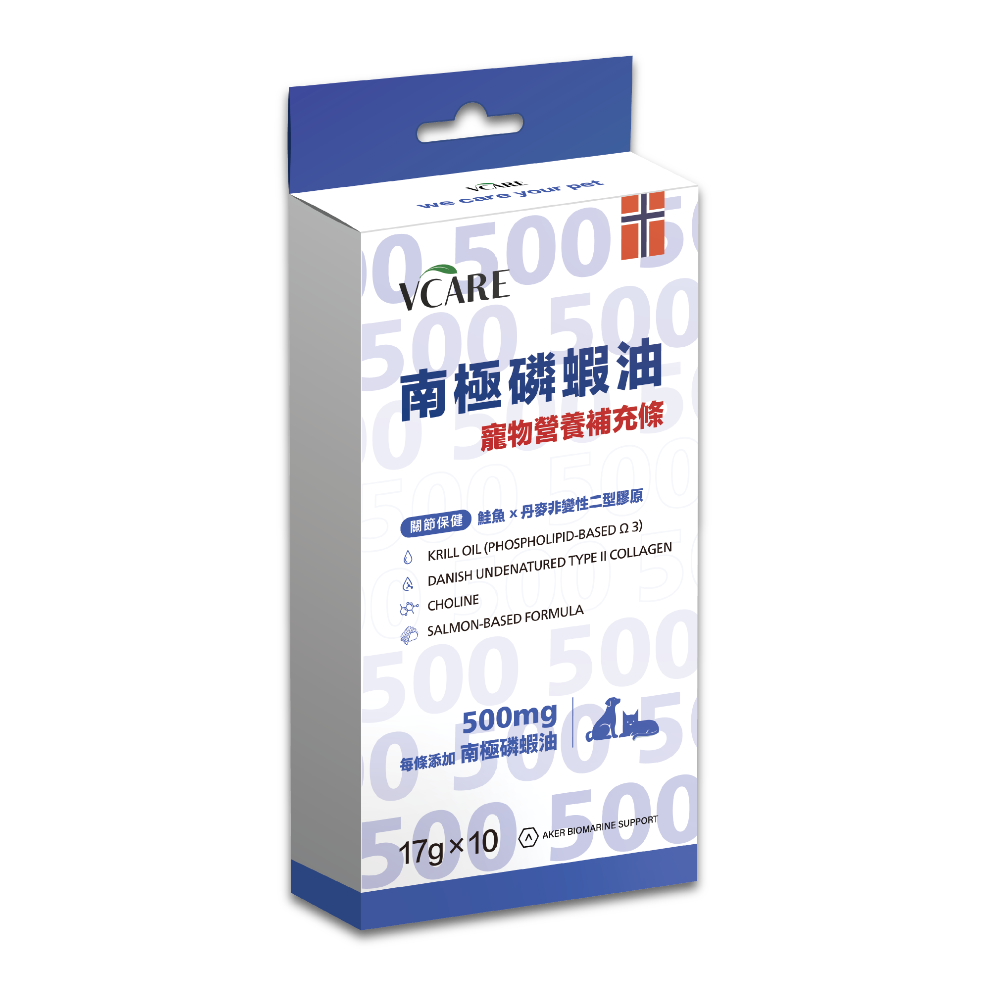 (17g x10) VCARE南極磷蝦油寵物營養補充條 關節保健 鮭魚X丹麥非變性二型膠原 (貓狗食用)
