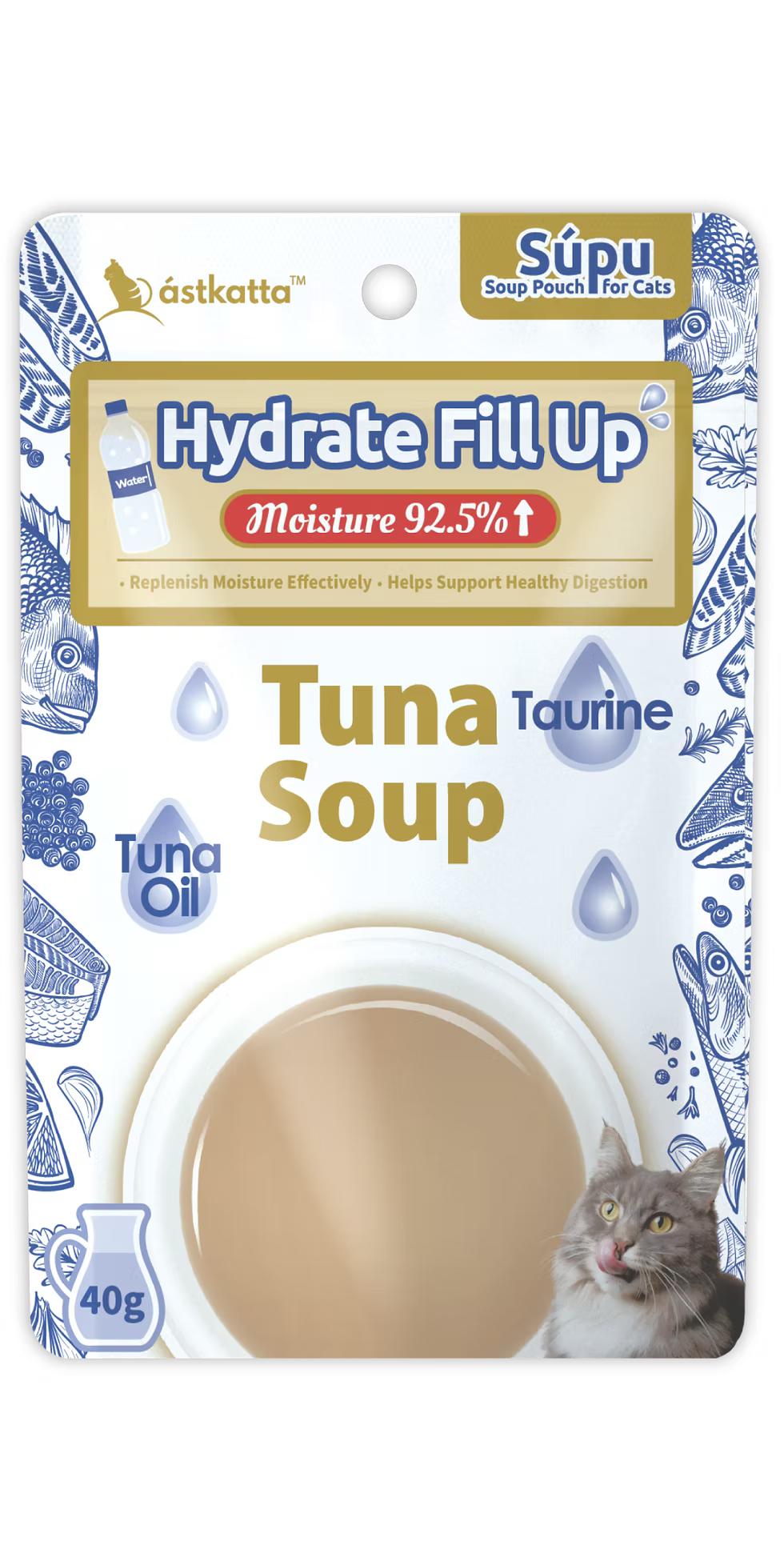 專為提升補水與整體健康設計,此款鮪魚湯含有超過92.5%的水分,有效支持貓咪水分攝取。添加鮪魚油,提供必需脂肪酸,促進毛髮健康與維持活力;關鍵營養素牛磺酸則支持心臟、視力與肌肉功能,維護長期健康與生命力。