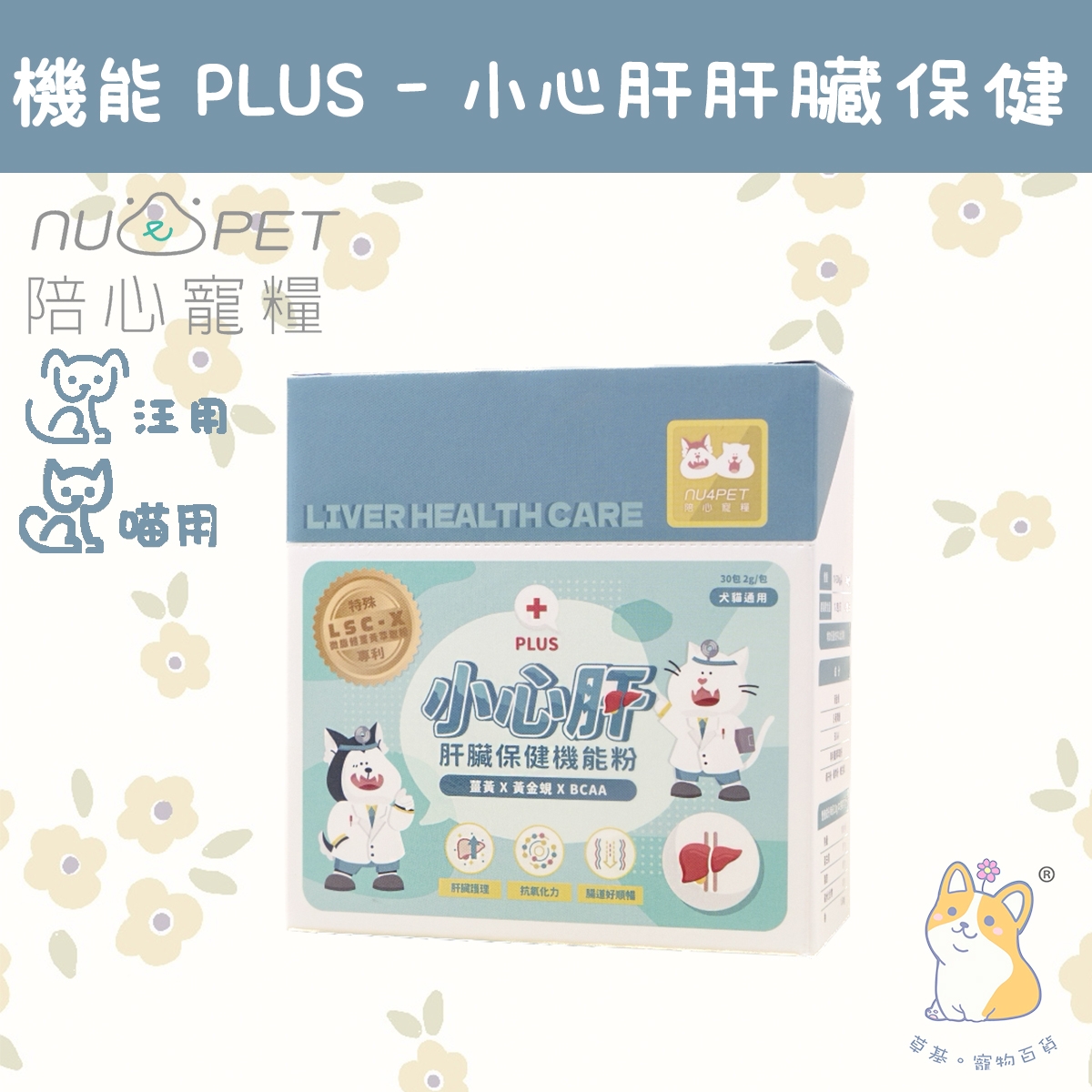 陪心機能PLUS - 小心肝肝臟保健(犬貓通用);;◾ 專利GC-25黃金蜆萃取精華;;◾ 專利LSC-X 微脂體薑黃萃取;;◾ 搭配黑芝麻、BCAA等高效配方;;◾ 提供多重植化素營養,保護毛孩小心肝;;以下症狀毛孩可適時補充;;✔【長期服藥】✔【肝臟保健】✔【熟齡犬貓】✔【油脂攝取過高】